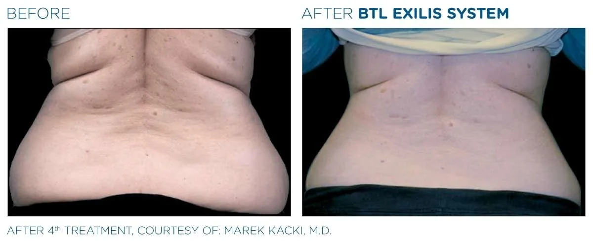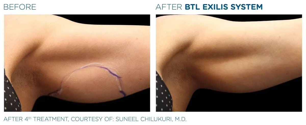 The Exilis can help to reduce the appearance of cellulite and contour the body by targeting problem areas such as the abdomen, thighs, and arms.