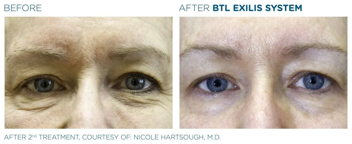 The Exilis can improve the appearance of aging skin by reducing fine lines and wrinkles, improving skin texture and tone, and promoting overall skin health.