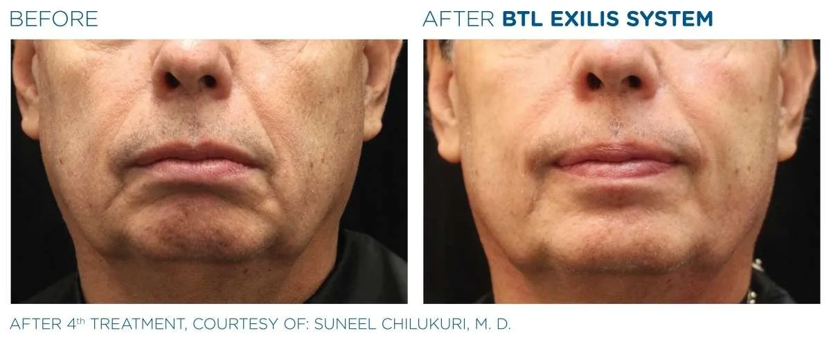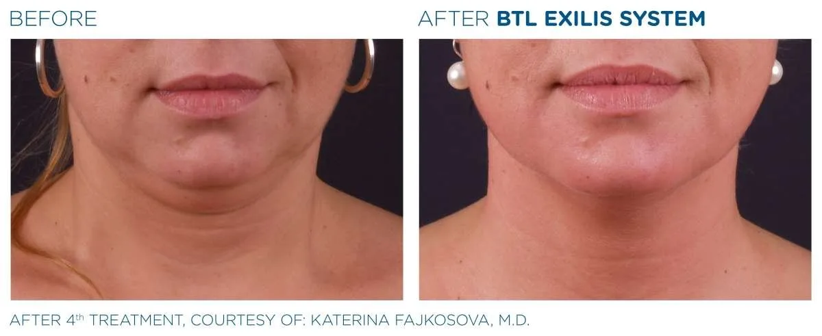 The Exilis uses radiofrequency energy and ultrasound technology to heat the deep layers of the skin, stimulating collagen production and improving skin elasticity. This can lead to tighter, firmer skin on the face and neck.
